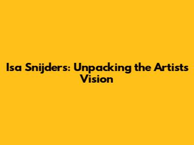 Isa Snijders: Unpacking The Artist's Vision