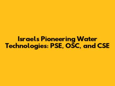 Israel's Pioneering Water Technologies: PSE, OSC, And CSE