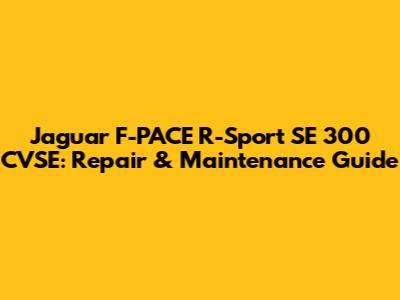 Jaguar F-PACE R-Sport SE 300 CVSE: Repair & Maintenance Tips