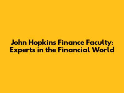 John Hopkins Finance Faculty: Experts In The Financial World