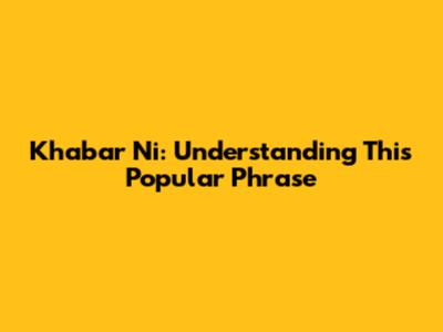 Khabar Ni: Understanding The Phrase
