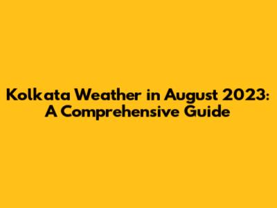 Kolkata Weather In August 2023: A Comprehensive Guide
