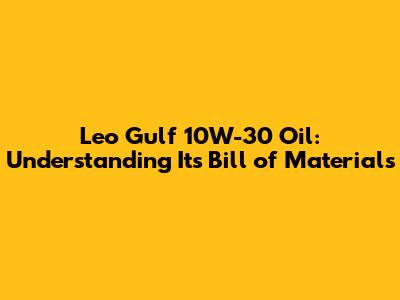 Leo Gulf 10W-30 Oil: Understanding Its Bill Of Materials