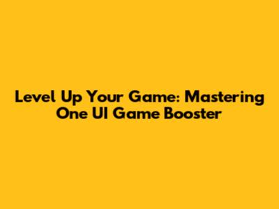 Level Up Your Game: Mastering One UI Game Booster