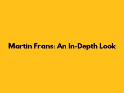 Martin Frans: An In-Depth Look