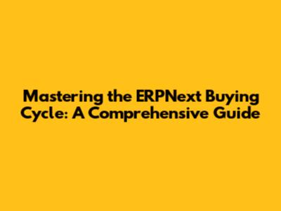 Mastering The ERPNext Buying Cycle: A Complete Guide