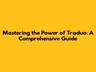 Mastering The Power Of Traduo: A Comprehensive Guide