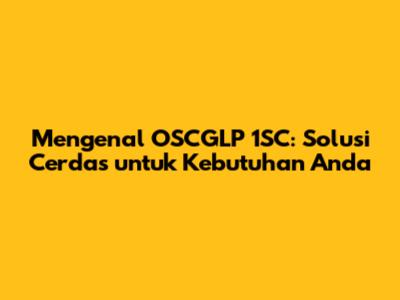 Mengenal OSCGLP 1SC: Solusi Cerdas Untuk Kebutuhan Anda