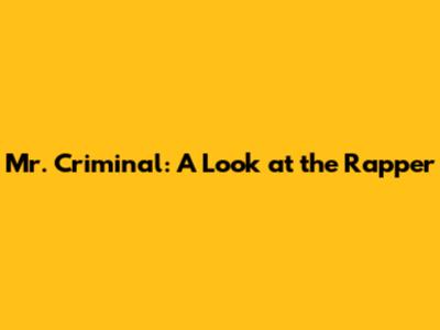 Mr. Criminal: A Look At The Rapper