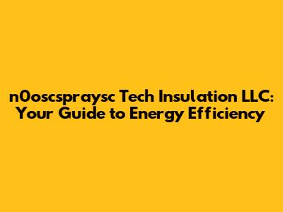 N0oscspraysc Tech Insulation LLC: Your Guide To Energy Efficiency