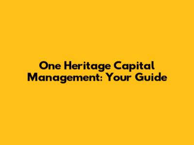 One Heritage Capital Management: Your Guide