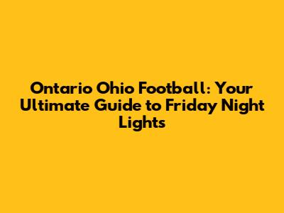 Ontario Ohio Football: Your Ultimate Guide