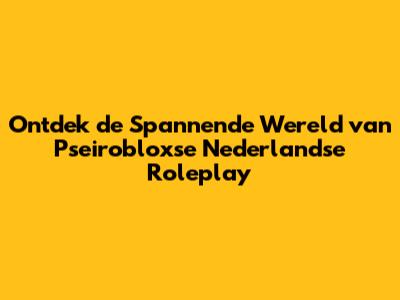 Ontdek De Spannende Wereld Van Pseirobloxse Nederlandse Roleplay