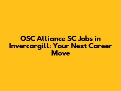 OSC Alliance SC Jobs In Invercargill: Your Next Career Move