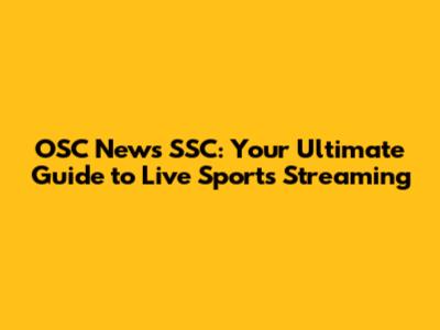 OSC News SSC: Your Ultimate Guide To Live Sports Streaming