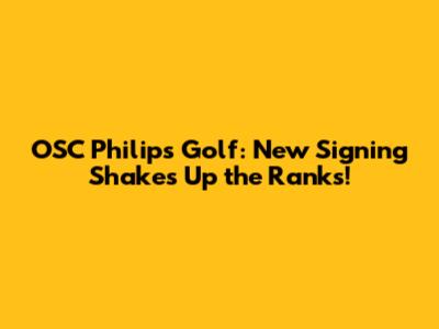 OSC Philips Golf: New Signing Shakes Up The Ranks!