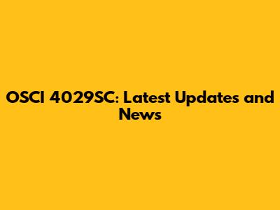 OSCI 4029SC: Latest Updates And News