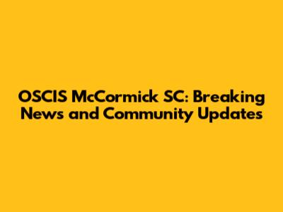 OSCIS McCormick SC: Breaking News And Community Updates