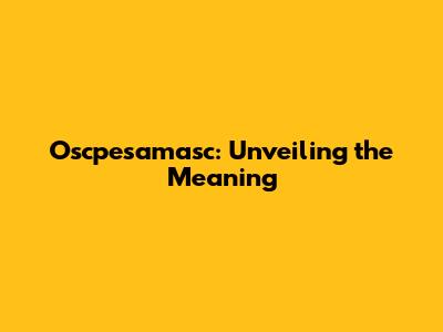Oscpesamasc: Unveiling The Meaning