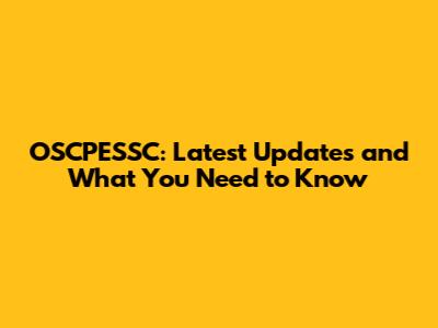 OSCPESSC: Latest Updates And What You Need To Know