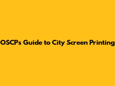 OSCP's Guide To City Screen Printing