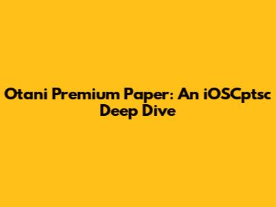 Otani Premium Paper: An IOSCptsc Deep Dive