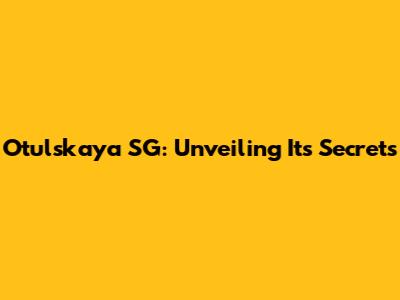 Otulskaya SG: Unveiling Its Secrets