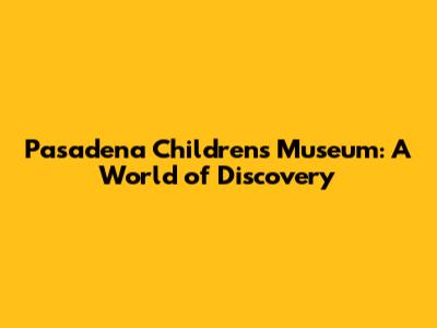 Hey guys! Are you looking for a place where your kids can have a blast while learning something new? Look no further! The Pasadena Children's Museum is the perfect spot for a day of fun and exploration. It's designed to ignite curiosity and foster creativity in children of all ages. Let’s dive into what makes this museum a must-visit destination.