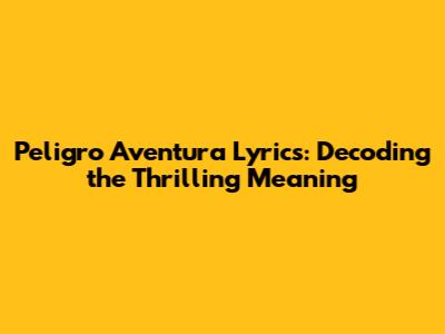 Peligro Aventura Lyrics: Decoding The Thrilling Meaning