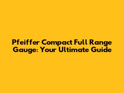 Pfeiffer Compact Full Range Gauge: Your Ultimate Guide