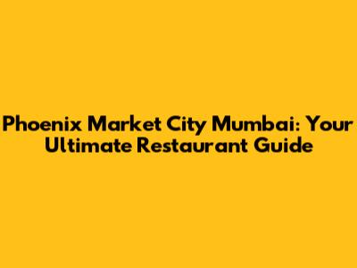 Phoenix Market City Mumbai: Top Restaurants & Dining