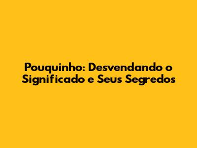Pouquinho: O Que Realmente Significa?