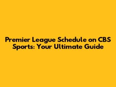 Premier League Schedule On CBS Sports
