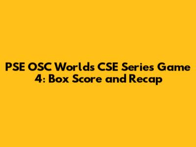 PSE OSC Worlds CSE: Game 4 Box Score & Recap