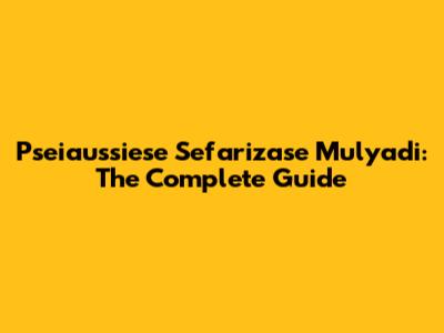 Pseiaussiese Sefarizase Mulyadi: The Complete Guide