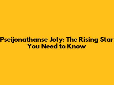 Pseijonathanse Joly: The Rising Star You Need To Know