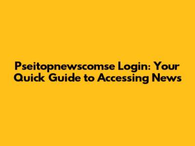 Pseitopnewscomse Login: Your Quick Guide To Accessing News