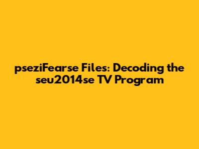 First off, let's dissect each component of the title to get a clearer picture. "pseziFearse Files" sounds like a collection of documents or data, possibly related to something fear-inducing or mysterious. The term "seu2014se" is a bit more cryptic. It could be an acronym, a specific project code, or even a typo. The "Program TV" part suggests that whatever we're dealing with, it's linked to television programming.