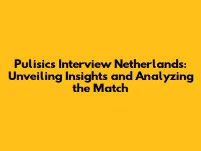 Pulisic's Interview On Netherlands: A Deep Dive