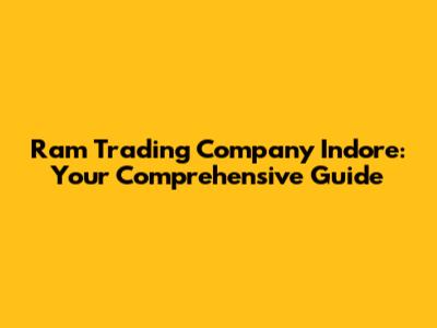 Ram Trading Company Indore: Your Guide