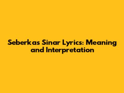 Seberkas Sinar Lyrics: Meaning And Interpretation
