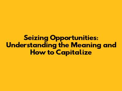 Seizing Opportunities: Meaning And How-To