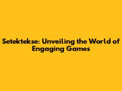 Setektekse: The Ultimate Guide To This Engaging Game