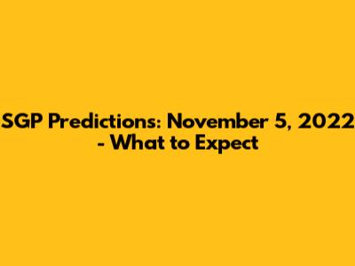 Hey everyone! Are you ready to dive into the SGP predictions for November 5, 2022? I know, I know, it's always exciting to see what the numbers might bring, and let's be real, who doesn't love a little thrill? Well, get comfortable because we're about to break down everything you need to know. We’ll look at the possible outcomes and the factors that could influence them. Keep in mind that these are predictions, and no one can predict the future, but we'll use all available information to make the most informed analysis. Let's get started, shall we?
