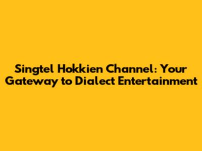 Singtel Hokkien Channel: Your Gateway To Dialect Entertainment