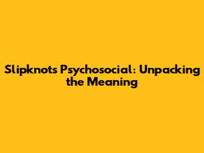 Slipknot's Psychosocial: Unpacking The Meaning