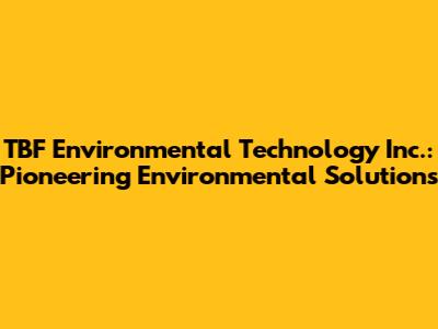 TBF Environmental Tech: Solutions For A Cleaner Future