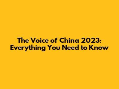 The Voice Of China 2023: Everything You Need To Know