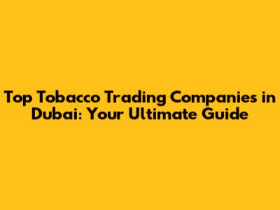 Top Tobacco Trading Companies In Dubai: Your Ultimate Guide