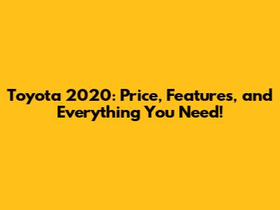 Toyota 2020: Price, Features, And Everything You Need!
